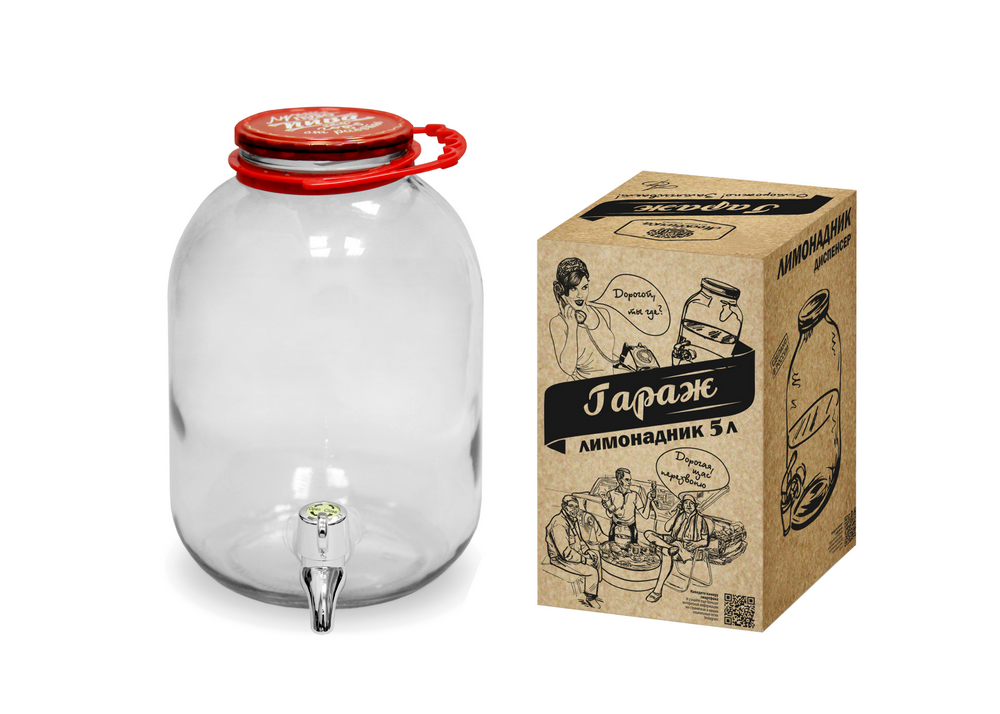Стеклянная банка Лимонадник (Диспенсер) 5л.