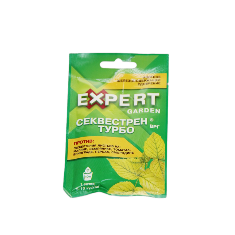 Секвестрен Турбо 25г - это азотное железосодержащее минеральное удобрение против пожелтения листьев на малине, землянике, томатах, винограде, перцах, смородине и устранения признаков дефицита железа. Применяется для коррекции и эффективного устранения признаков дефицита железа у растений, овощных, фруктовых культур: яблоня, груша, плодовые косточковые (персик, абрикос, слива, вишня, черешня), морковь, свекла, картофель, капуста, помидоры, баклажаны, лук, перец, томат, виноград, крыжовник, черная смородина и других цветочных культур. Средство мгновенно действует и дает высокие результаты, препятствует пожелтению листьев, улучшает процессы фотосинтеза, стимулирует рост и развитие растений, содержит важные микроэлементы: азот и железо.