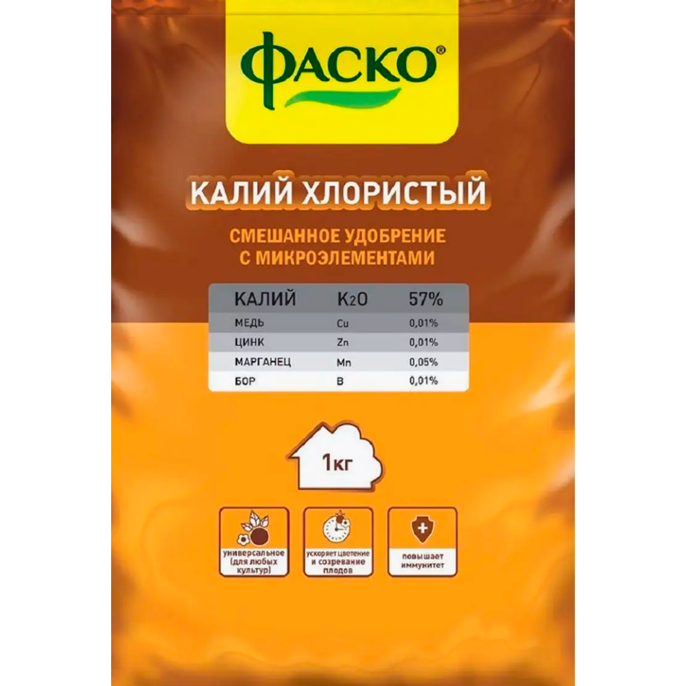 Удобрение сухое Калий хлористый минеральное с микроэлементами 1кг. Если почвы в огороде или саду бедны калием, не ждите обильного цветения и хотя бы небольшого урожая плодов. Высокоэффективное, калийное удобрение с микроэлементами используется для основного и предпосевного внесения под культуры (овощные, плодово-ягодные, декоративные). Обеспечивает равномерное сбалансированное питание растений и обладает пролонгированным действием.