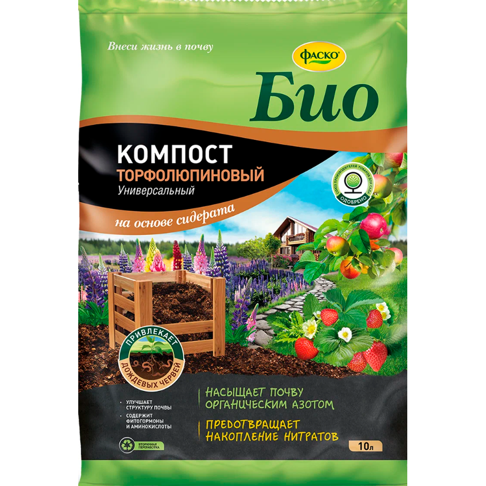 Удобрение сухое Фаско Био Компост торфолюпиновый органоминеральное 10л