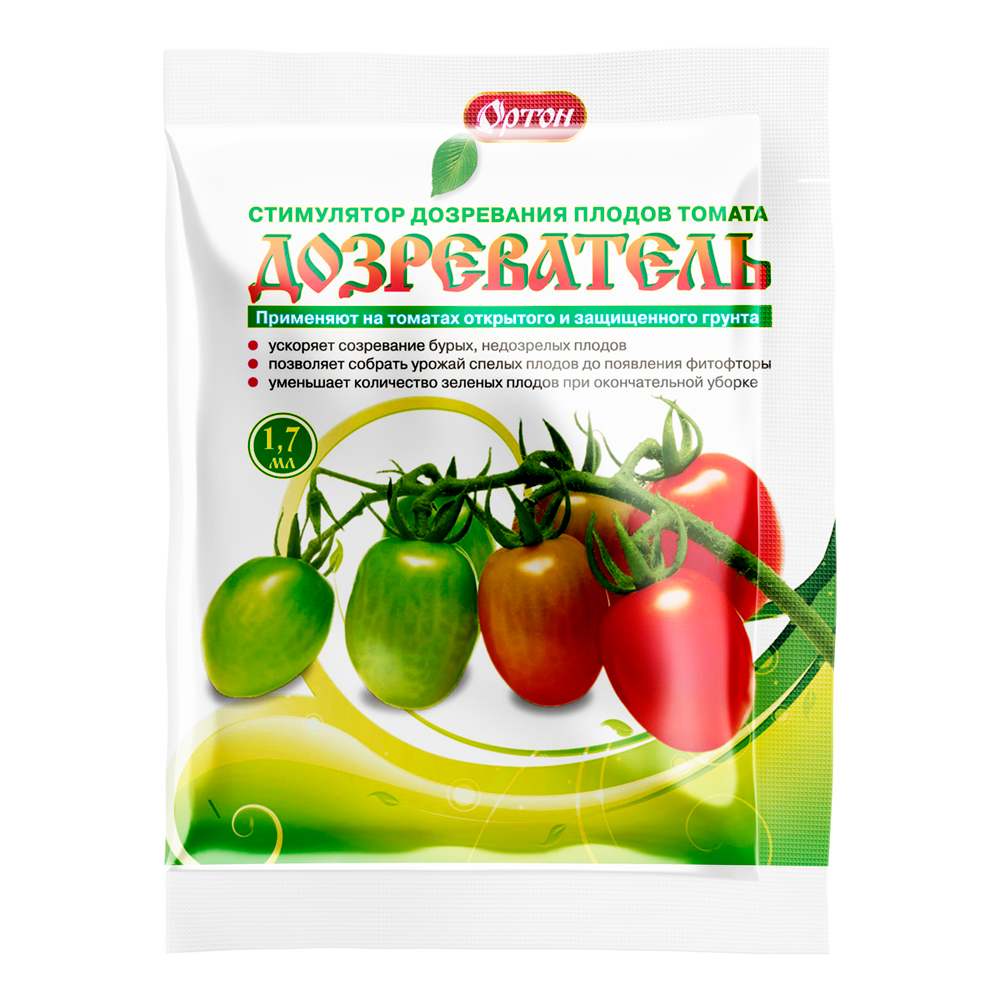 Дозреватель 1,7 мл — это специализированное средство, предназначенное для ускорения созревания плодов томатов и повышения их качества. Продукт содержит активные вещества, которые стимулируют процессы созревания, улучшая вкусовые характеристики и внешний вид плодов.