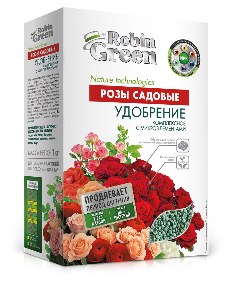Удобрение сухое Робин Грин минеральное для садовых Роз с микроэлементами в коробке 1 кг (12)