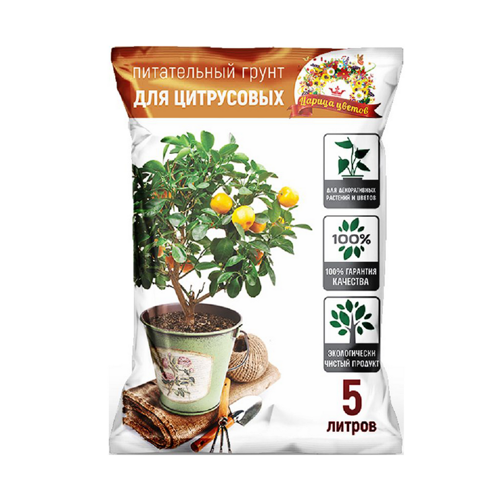 Грунт для цитрусовых содержит оптимальный состав веществ для роста и поддержания здоровья растений.