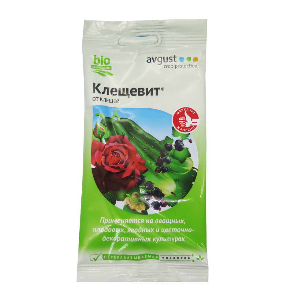 Средство «Клещевит» — это надежный помощник для борьбы с клещами на комнатных растениях, а также фруктовых, овощных и декоративных культурах. Полная гибель вредителей наступает на 3-4 день после обработки. Использование средства не приводит к формированию резистентности у клещей. Упаковки препарата достаточно для обработки нескольких кустарников.