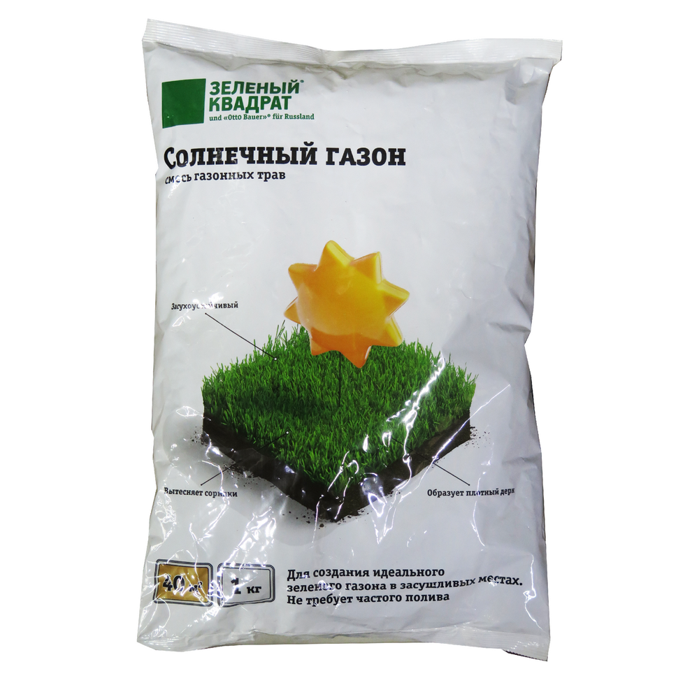 Семена газонных трав для идеального газона в засушливых местах Зеленый квадрат Солнечный, 1 кг. Не требует частого полива. Состав: Райграс многолетний (сорт 1) 35%, Райграс многолетний (сорт 2) 20%, Овсяница красная красная 20%, Овсяница тростниковая 10%, Райграс итальянский 10%, Мятлик луговой 5%. Семена газонных трав Зелёный Квадрат для идеального газона в засушливых местах Солнечный, 1 кг. Не требует частого полива. Газонная смесь засухоустойчивая состоит из семян овсяницы: красной и тростниковидной. К ней также добавляют пастбищный райграс (многолетний)– неприхотливой злаковой культуры с мощными корнями и пышными листьями красивого изумрудного цвета. Однако основную роль газона для засушливых мест составляет именно овсяница – растение, известное своей устойчивостью к недостатку влаги.