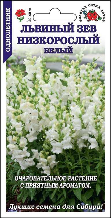 Очаровательное садовое растение с многочисленными белоснежными цветками-«собачками», собранными в кистевидные соцветия. Кусты компактные, ветвистые, с прямыми побегами. Львиный зев обладает приятным ароматом, цветет обильно и длительно. Используется для украшения клумб, бордюров, вазонов и балконных ящиков, прекрасно подходит для срезки в букеты.