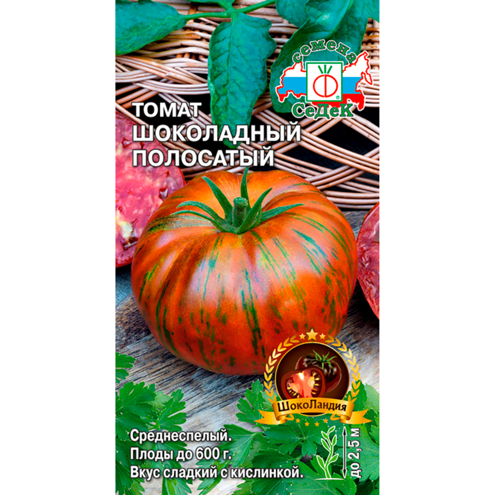 Среднеспелый (110-120 дней) сорт салатного назначения для парников и теплиц. Растение индетерминантное, высотой до 2,5 м. Может формироваться в один или два стебля. В кисти до 5 плодов. Плоды плоскоокруглые крупные, ребристые, массой 280-400 г, отдельные плоды до 600 г, оригинальной окраски: незрелые - зеленые с темно-зелеными полосками, зрелые - красно-коричневые с блестящими зелеными полосками. Мякоть мясистая, сочная, ароматная, имеет неповторимый сладкий вкус с легкой томатной кислинкой. Урожайность 9-11 кг/м2. Ценность сорта: крупноплодность, отличный вкус, необычная расцветка зрелых и незрелых плодов, которые станут украшением Вашей теплицы. Рекомендуется для приготовления свежих салатов, сока и переработки на томатопродукты.