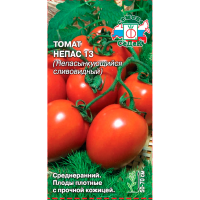 Среднеранний (108-112 дней) сорт для открытого грунта и пленочных укрытий. Растение штабовое, детерминантное, высотой 50-70 см. Не требует формирования и обязательного пасынкования. Плоды сливовидные, «с носиком», красные, глянцевые, массой 70-90 г, плотные, с прочной кожицей, не растрескиваются. Вкусовые качества высокие. Урожайность 5- 6 кг/м2 Ценность сорта: устойчивость к заболеваниям и перепадам температуры, жаростойкость, обильное плодоношение, пригодность для транспортировки. Рекомендуется для употребления в свежем виде, засолки и консервирования.