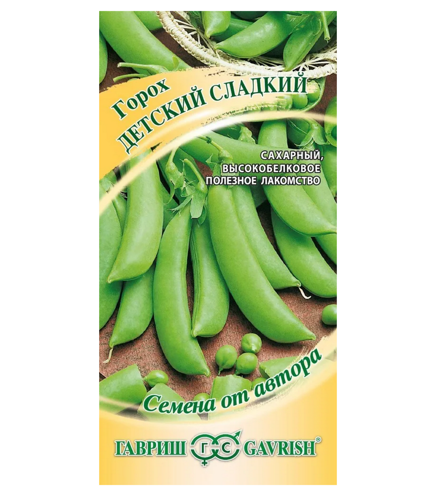 Каждый огородник желает вырастить такой горох, что послаще и покрупнее. И чтобы давал хороший урожай, мало поражался болезнями, вредителями, и созревал в нужное время. Ведь десертные лопатки с сочными семенами — это ценный диетический продукт богатый белками, сахарами, крахмалом, витаминами и каротином. Одним из таких супер сахарных сортов является Детский сладкий. Раннеспелый. Растение высотой до 80 см. Боб слабоизогнутый, с заостренной верхушкой, без пергаментного слоя, длинный, широкий. В каждом бобе завязывается 7-9 сахарных горошин. Стенки бобов толстые, мясистые, на вкус сладкие, без наличия жестких тканей. Рекомендуется для употребления недозрелых бобов в свежем виде. Урожайность 1,0-1,5 кг/м2. Посев производят ранней весной на солнечной стороне участка на глубину 4-6 см. Схема посева: 15x30 см. Растениям требуется подвязка.