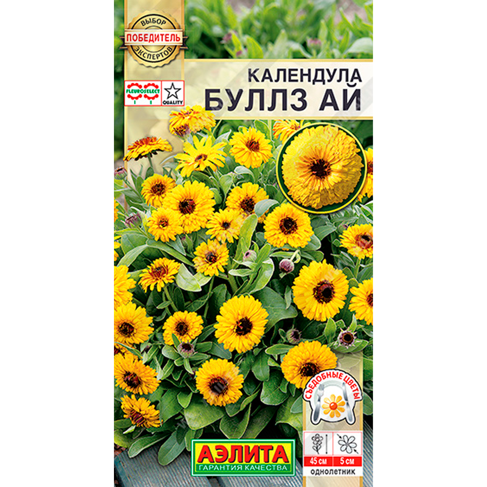 Выразительный сорт календулы (более известный в мире как «Bull’s Eye»). Награжден за декоративные качества международной организацией производителей семян цветов FLEUROSELECT. Помпонные соцветия с красновато-коричневыми серединками достигают Ø 4-5 см. Золотисто-желтые лепестки с обратной стороны окрашены в алый цвет. Растения плотные, приземистые, с большим числом крепких цветоносов длиной 40-45 см. Устойчивы к вредителям, болезням, похолоданиям. Обладают лечебными свойствами. Их можно выращивать в горшечной культуре: для украшения подоконника и патио на загородном участке. Сорт подходит для срезки. Цветки съедобны.