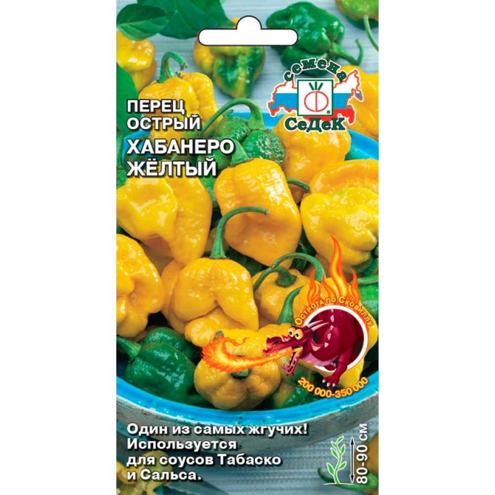 Среднеспелый (110-115дней) сорт родом из Мексики, выращивается в теплицах и пленочных укрытиях. Растение прямостоячее, мощное, высотой 80-90 см. Плоды морщинистые, по форме напоминают фонарики, длиной 4-5 см, шириной 2-3 см, массой 30-50 г, в технической спелости светло-зеленые, в биологической – ярко-желтые, отличаются высокой остротой и ярко выраженным перечным вкусом, и неповторимым ароматом, присущим только данному сорту. Ценность сорта: неприхотливость выращивания, высокая урожайность, обильное и продолжительное плодоношение, с одного куста можно получить более 900 штук плодов. Степень остроты по шкале Сковилла составляет от 200000-350000, это один из самых жгучих перцев, который является основным ингредиентом в известных соусах Табаско и Сальса. Все разновидности перцев «Хабанеро» богаты алкалоидами (капсаицином), витаминами А, В, С, D, микроэлементами (йод, калий, железо, марганец, медь, кальций, натрий). Имеют обезболивающее и антибактериальное действия, ускоряют метаболизм. Это отличный антиоксидант,
