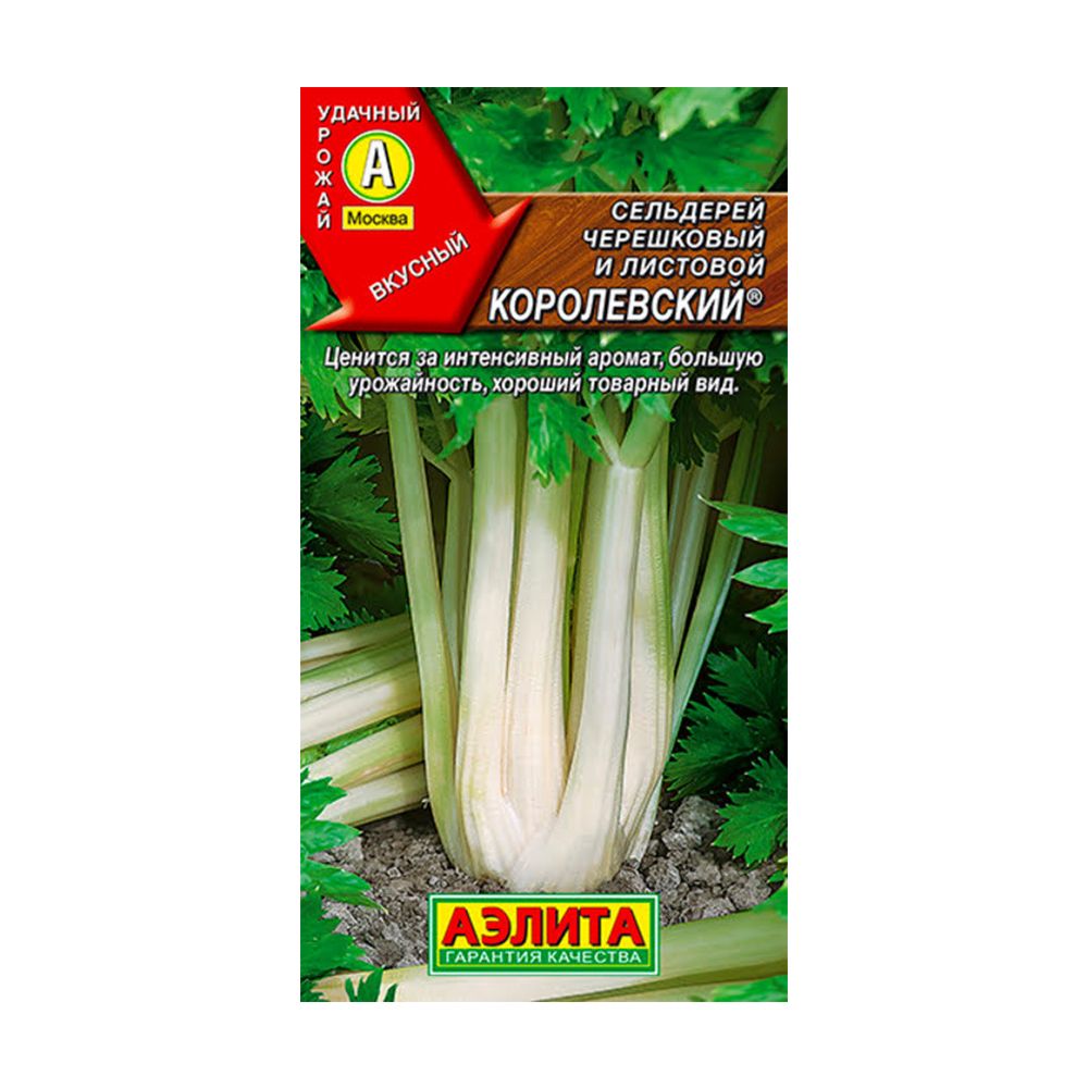 "Королевский" сельдерей черешковый – среднеспелый сорт для вашей кухни. Его отличительные черты – мощные розетки с крупными, мясистыми стеблями салатово-золотистого цвета. Созревает за 140-160 дней, каждое растение весит 700-800 г. Этот сельдерей не только богат витаминами и микроэлементами, но и порадует вас отличным вкусом и ароматом. Он универсален: свежий – для салатов и супов, а также подходит для заготовок (заморозка, сушка). Свежие стебли долго хранятся. Для улучшения вкуса и цвета стеблей, растения окучивают во второй половине лета. Урожайность составляет 3,5-5,0 кг/м². Выращивается через рассаду, посев семян поверхностный (требует света для прорастания), пикировка – при появлении первого настоящего листа. Не забывайте о своевременных поливах, прополках, рыхлении и подкормках.