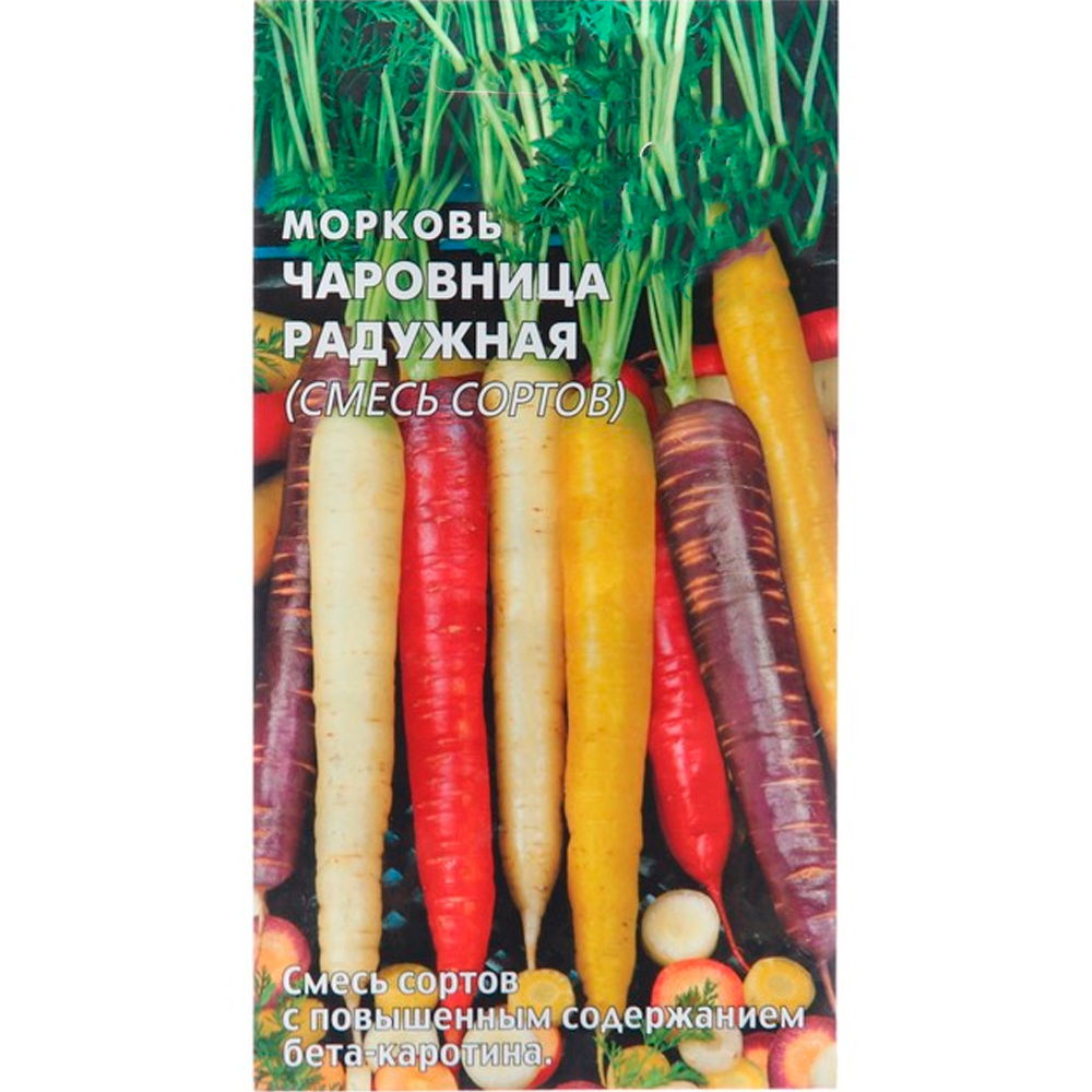 Смесь четырех раннеспелых (70-90дней) гибридов моркови: корнеплоды с ярко-фиолетовой кожицей и с оранжевой мякотью, ярко-желтые, белые, красно-алые, сочные, сладкие и ароматные по вкусу, хрустящие. Употребление разноцветных сортов моркови в пищу позволяет: укрепить иммунную систему, нормализовать уровень холестерина, снизить риск онкологических заболеваний, улучшить зрение, за счет наличия антоцианов, большого содержания бета-каротина, а также микроэлементов и витаминов. Поэтому полезнее всего употреблять морковь в пищу в свежем виде или использовать для приготовления свежевыжатого сока. Из-за необычного окраса эти корнеплоды используют для украшения различных блюд. Корнеплоды можно мариновать, варить, жарить, тушить, запекать.