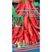 Великолепный крупноплодный сорт для открытого и закрытого грунта. Растение высотой 50-80 см. Плоды удлинённо-конусовидные, изогнутые, длиной 19-27 см, в диаметре 2,5-3,5 см, зеленовато-белые, а при созревании семян красные. Плоды ароматные, очень острые, используются в свежем и сушёном виде в качестве приправы к супам, мясным и рыбным блюдам. Очень хорошо «Слоновый хобот» растет на подоконнике, балконе или лоджии.