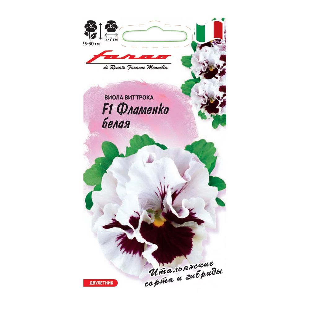 Итальянская серия "F1 Фламенко" представляет великолепную крупноцветковую виолу, которая станет настоящим украшением вашего сада. Это двулетнее растение формирует компактные, хорошо разветвленные кусты с роскошными махровыми и полумахровыми цветами (5-7 см в диаметре). Необычная палитра оттенков, от темно-бардового до белоснежного, придает ей особую прелесть. Обильное и продолжительное цветение с мая по сентябрь, раннее начало и высокая устойчивость к неблагоприятным условиям делают эту виолу незаменимой для декорирования балконов, контейнеров, садовых ваз, клумб и рабаток. Растение влаголюбивое, холодостойкое, предпочитает солнечные или полутенистые места. Для цветения в год посева, семена высевают на рассаду в феврале-марте (всходы через 5-7 дней). Рассаду высаживают в открытый грунт в конце апреля – начале мая с интервалом 15-20 см. Пересадку в цветущем состоянии переносит хорошо. При посеве в грунт в июне-июле, цветение ожидается на второй год.