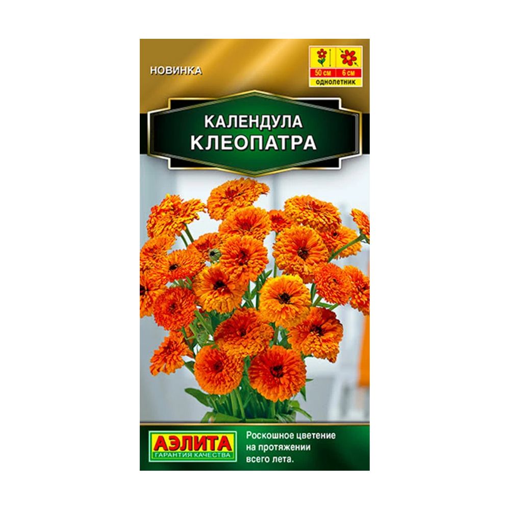Календула сорта 'Клеопатра' – это настоящее украшение сада, радующее глаз пышными, махровыми и полумахровыми цветами диаметром 4-6 см. Эти растения не только красивы, но и удивительно выносливы: они легко переносят прохладную погоду, сохраняя свою привлекательность до поздней осени. Крепкие, раскидистые кусты высотой 40-50 см обильно цветут с начала лета и до наступления морозов. 'Клеопатра' прекрасно смотрится в бордюрах, на клумбах и рабатках, служа как декоративным элементом, так и ценным лекарственным растением. Стоит отметить, что конечная высота куста может зависеть от условий, в которых он растет.