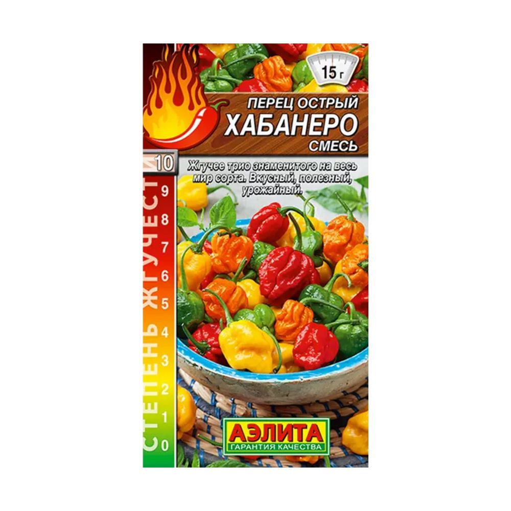 Представляем вам смесь острого перца Хабанеро – настоящего чемпиона по жгучести, занимающего 10-ю группу по шкале Сковилла с показателем около 300 000 единиц. Этот сорт порадует вас ранним урожаем: от появления всходов до сбора первых плодов пройдет всего 100-110 дней. В более прохладном климате лучше всего выращивать его в теплицах, где кусты могут достигать метра в высоту. На юге же он прекрасно чувствует себя в открытом грунте, вырастая до 60-70 см. Хабанеро также станет украшением вашего подоконника, при условии достаточного освещения. Плоды, длиной 3-4 см и весом 12-15 г, обильно завязываются и идеально подходят для создания пикантных блюд, соусов, маринадов, консервации и сушки. При выращивании в отапливаемых помещениях возможно многолетнее плодоношение. Важно: при работе с плодами и их переработке обязательно используйте перчатки для защиты кожи от ожогов.
