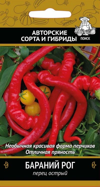 Высокоурожайный среднеспелый сорт. Для открытого грунта и плёночных теплиц. Период от всходов до начала созревания плодов 130-145 дней. Куст высотой 50-60 см. Плоды пониклые, узкоконусовидные, очень длинные, слабоморщинистые, скручены по спирали и похожи на бараний рог. Окраска в технической спелости зеленая, в биологической - красная. Длина 20-35 см, диаметр 1-1,5 см. Масса 25-35 г. Имеет пикантный острый вкус и сильный аромат. Используют как приправу к блюдам, в качестве специй при квашении, мариновании и консервировании. При консервировании семена не удаляют. Высушенные плоды - отличное украшение для Вашей кухни.
