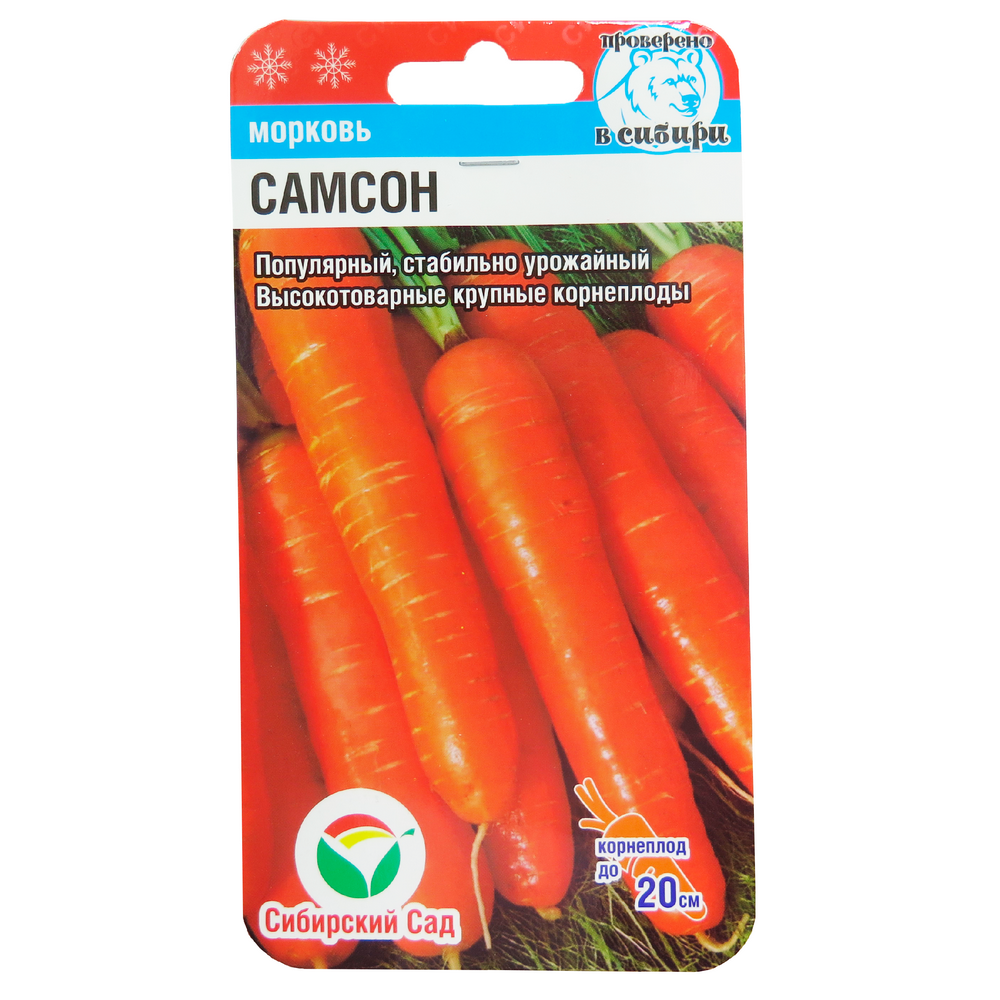 Отличный среднепоздний гибрид голландской селекции. Период от всходов до уборки урожая 112-115 дней. Корнеплод цилиндрический с тупым кончиком длинной 20-22 см, массой 150-220 грамм. Окраска корнеплода красно-оранжевая. Вкусовые качества отличные. Ценность сорта – стабильная урожайность, устойчивость к болезням и хорошая сохранность.