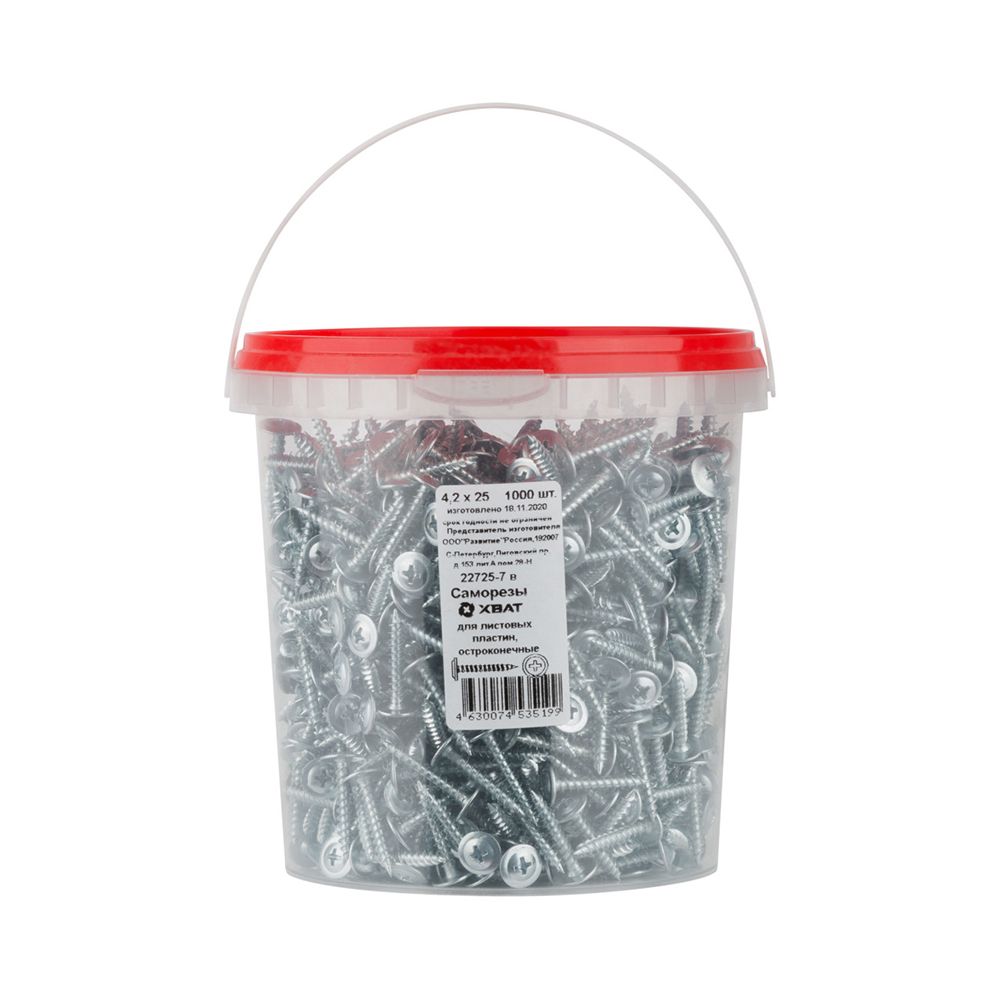 Саморезы для листовых пластин, остроконечные 4,2 х 25 (фасовка Ведро 1000 шт)