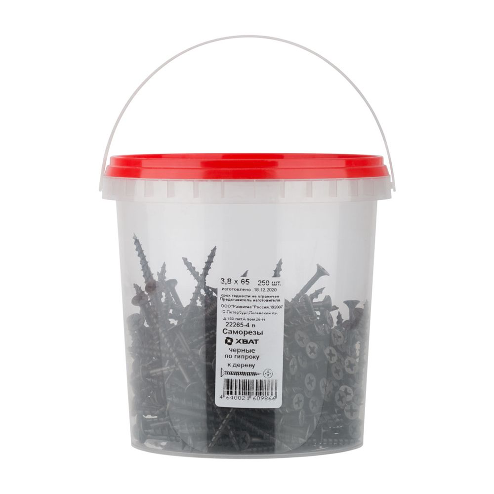 Саморезы черные по гипроку к дереву 3,8 х 65 (фасовка Ведро 250 шт)