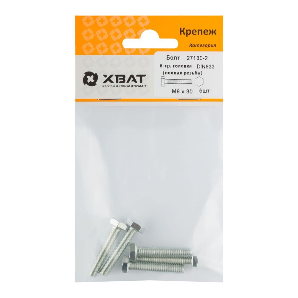 Болт 6-гранная головка (полная резьба) М6 х 30 ( фасовка 5 шт ) DIN933