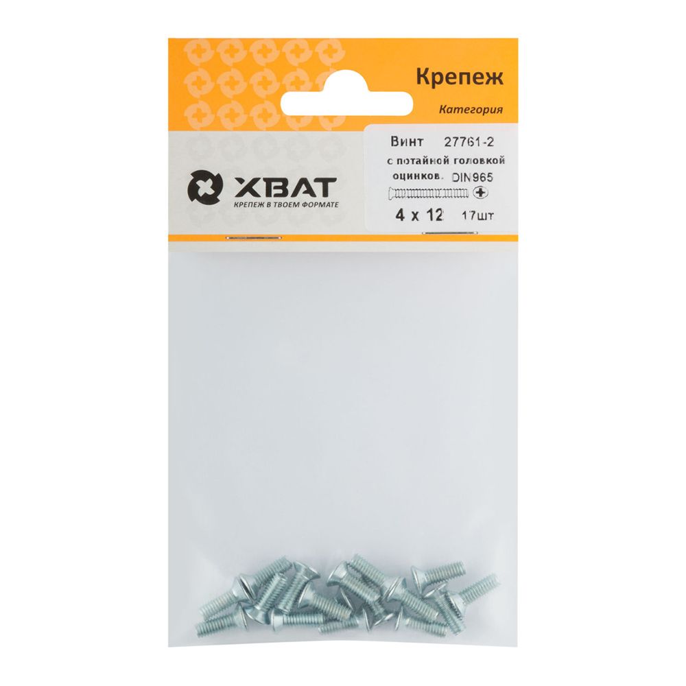 Винт с потайной головкой с полной резьбой оцинкованный DIN 965 4х12 17 шт.(фасовка)