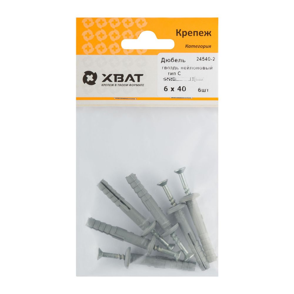 Дюбель-гвоздь полипропиленовый 6 х 40 тип С ( фасовка 6 шт.)