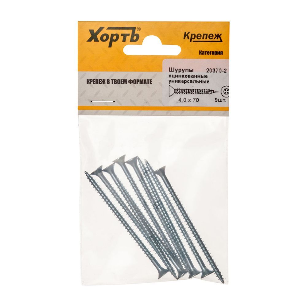 Шурупы оцинкованные, универсальные 4 х 70 (фасовка 9 шт)