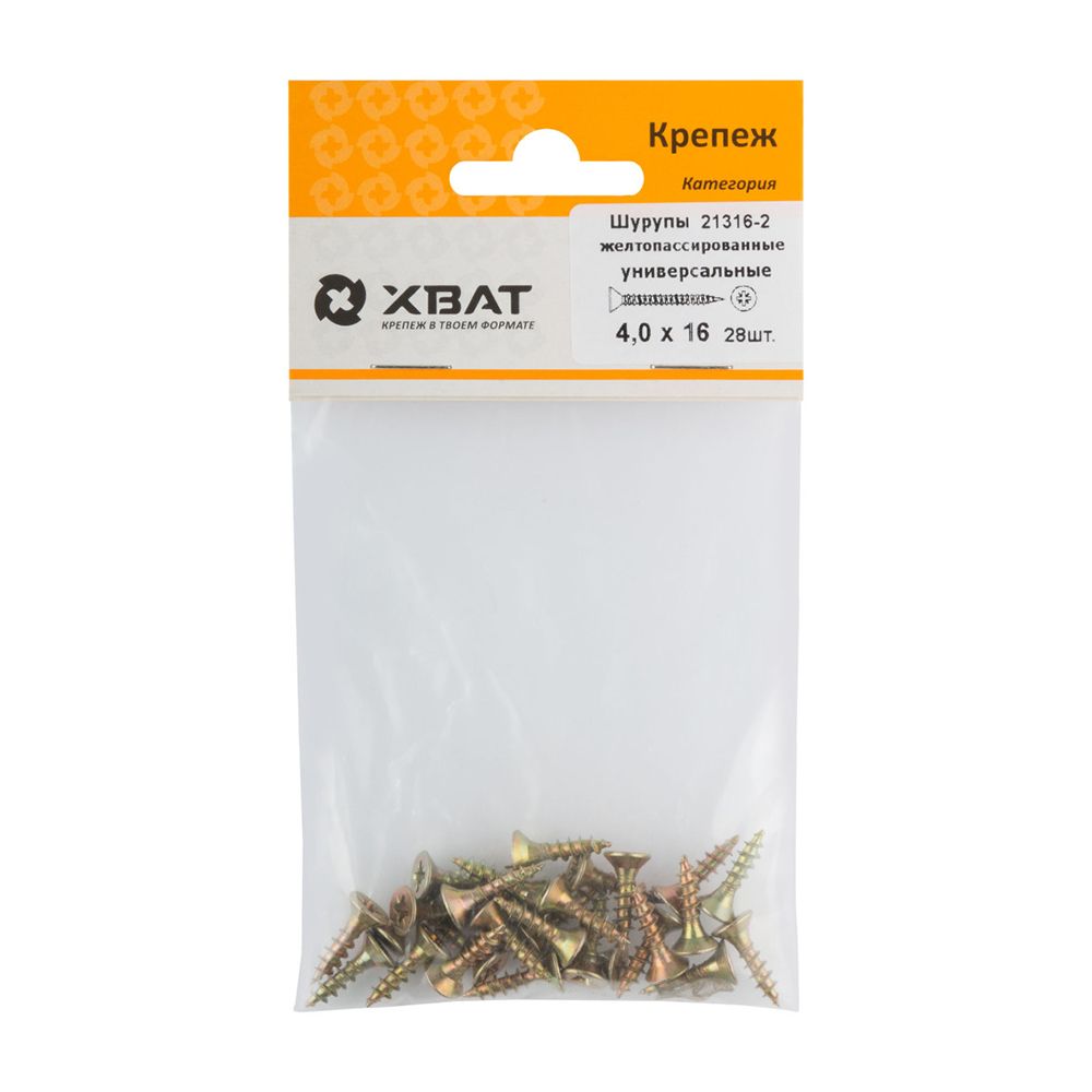 Шурупы желтопассированные, универсальные 4 х 16 ( фасовка 28 шт.)