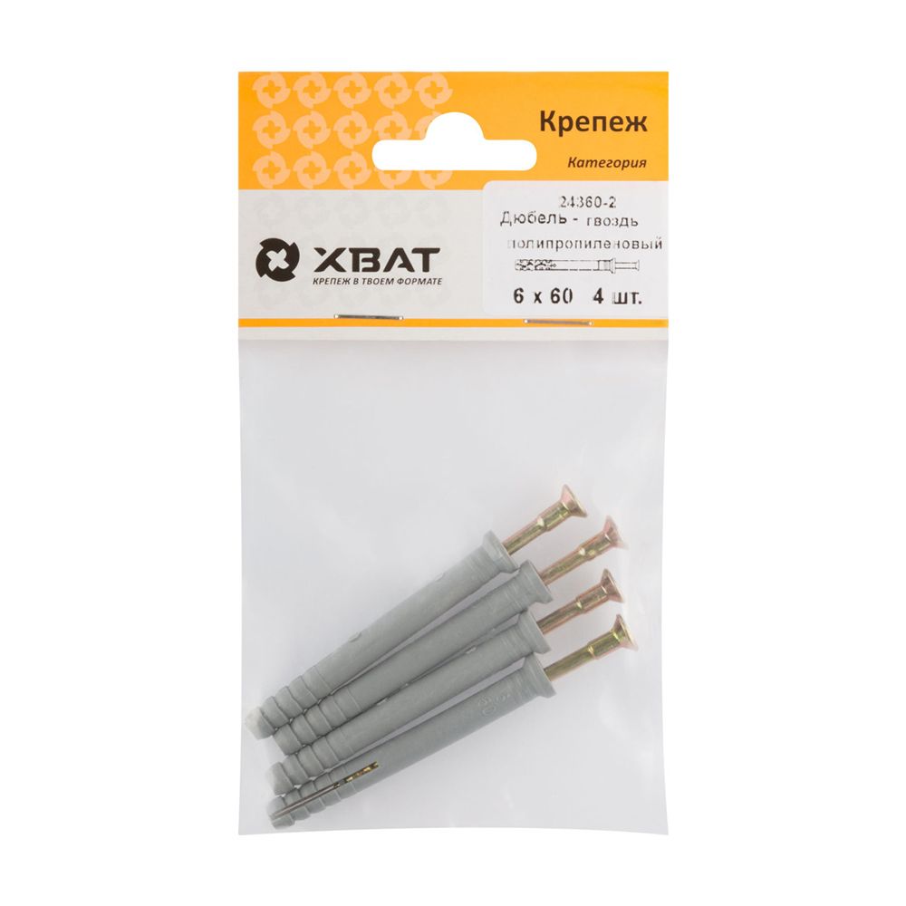 Дюбель-гвоздь полипропиленовый 6 х 60 ( фасовка 4 шт.)