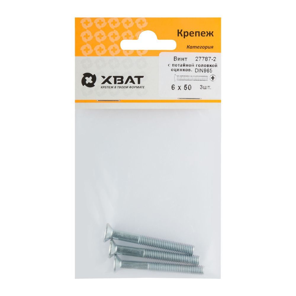 Винт с потайной головкой с полной резьбой оцинкованный DIN 965 6 х 50 3 шт (фасовка)