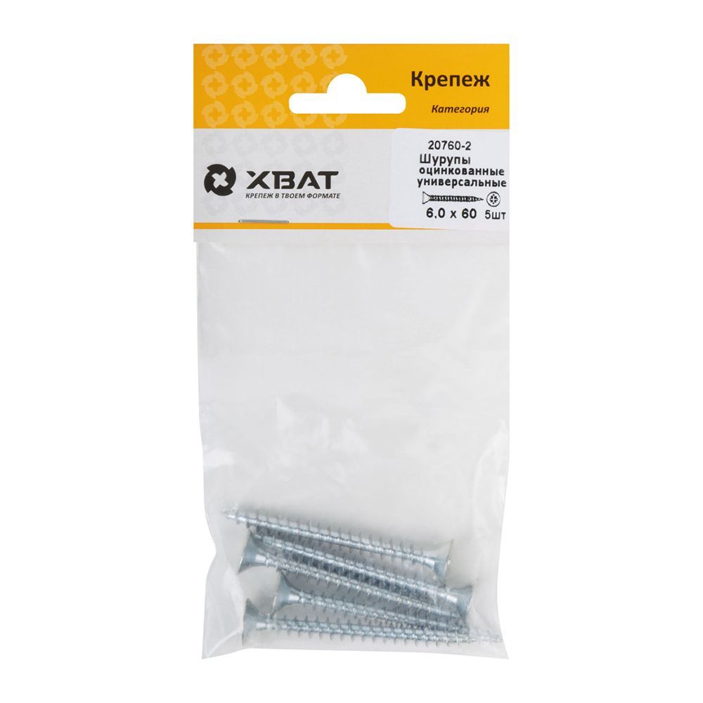 Шурупы оцинкованные, универсальные 6 х 60 ( фасовка 5 шт.)