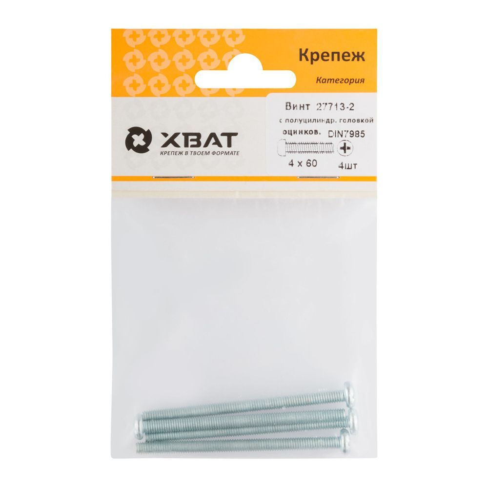 Винт с полуцилиндрич. головкой с полной резьбой оцинков. DIN 7985 4х60 4 шт.(фасовка)