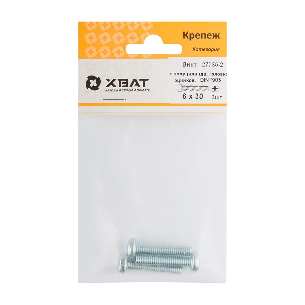 Винт с полуцилиндрич. головкой с полной резьбой оцинков. DIN 7985 6х30 3 шт.(фасовка)