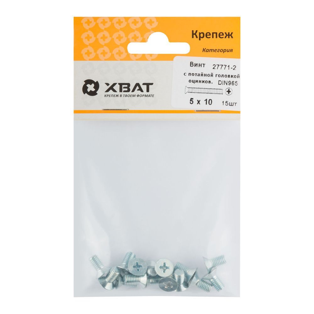 Винт с потайной головкой с полной резьбой оцинкованный DIN 965 5х10 15 шт.(фасовка)