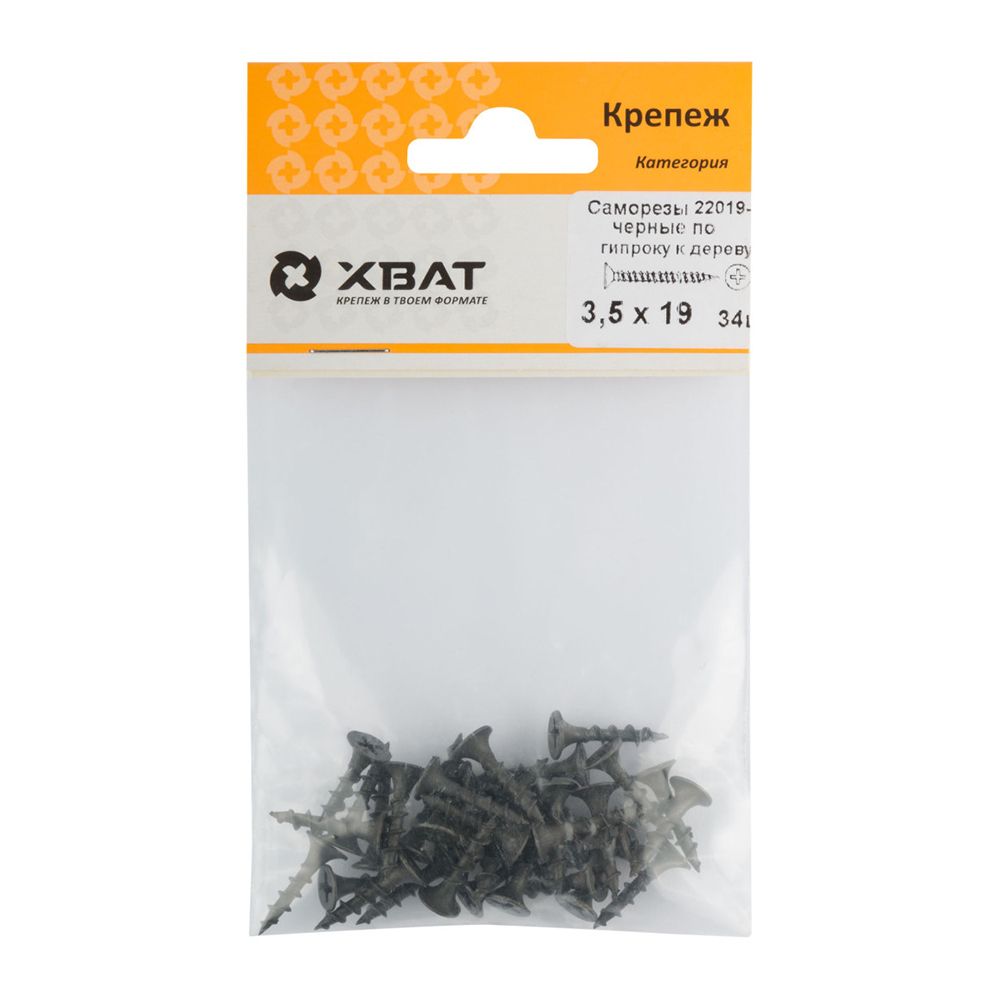 Саморезы черные по гипроку к дереву 3,5 х 19 (фасовка 34 шт )