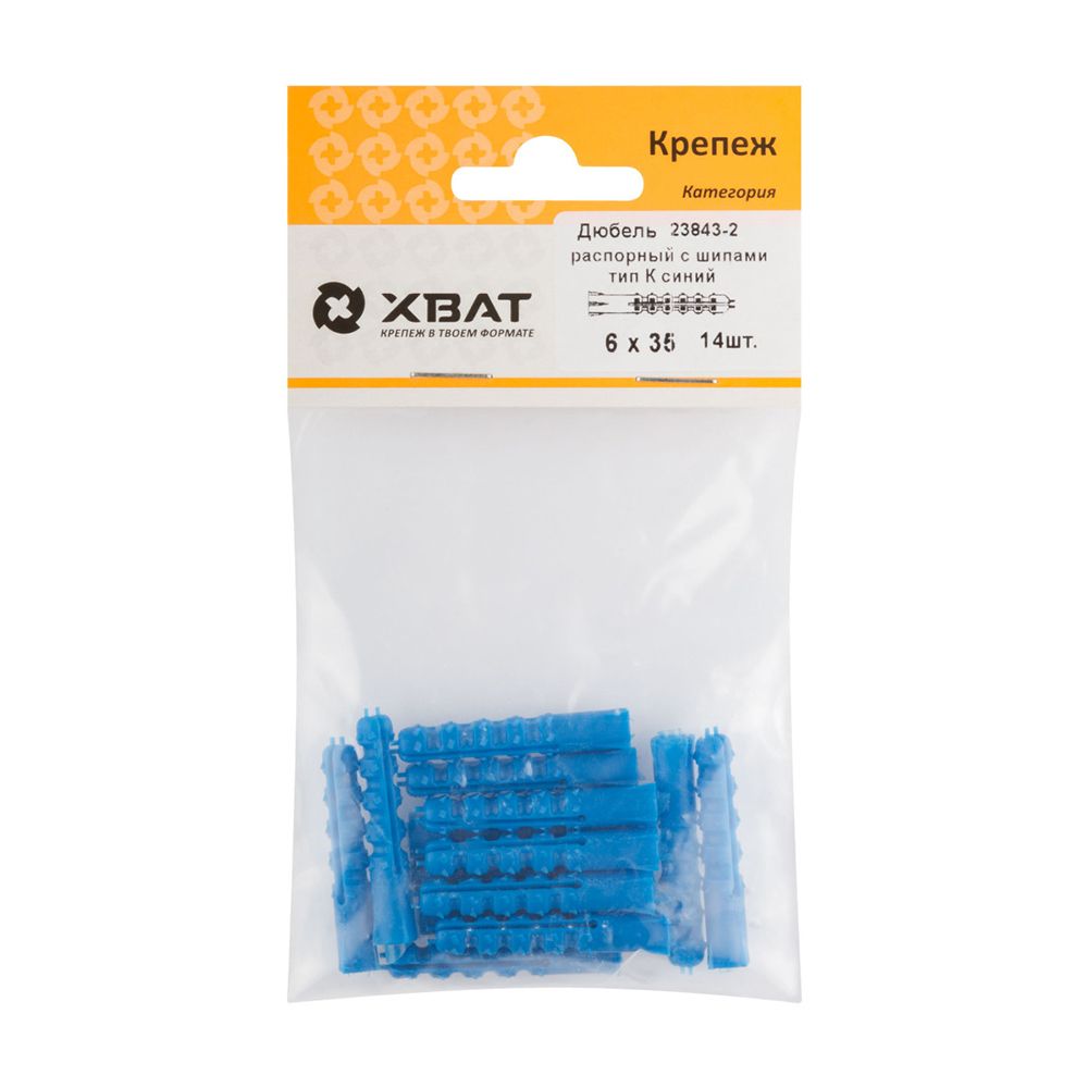 Дюбель распорный с шипами тип К синий 6 х 35 (фасовка 14 шт.)