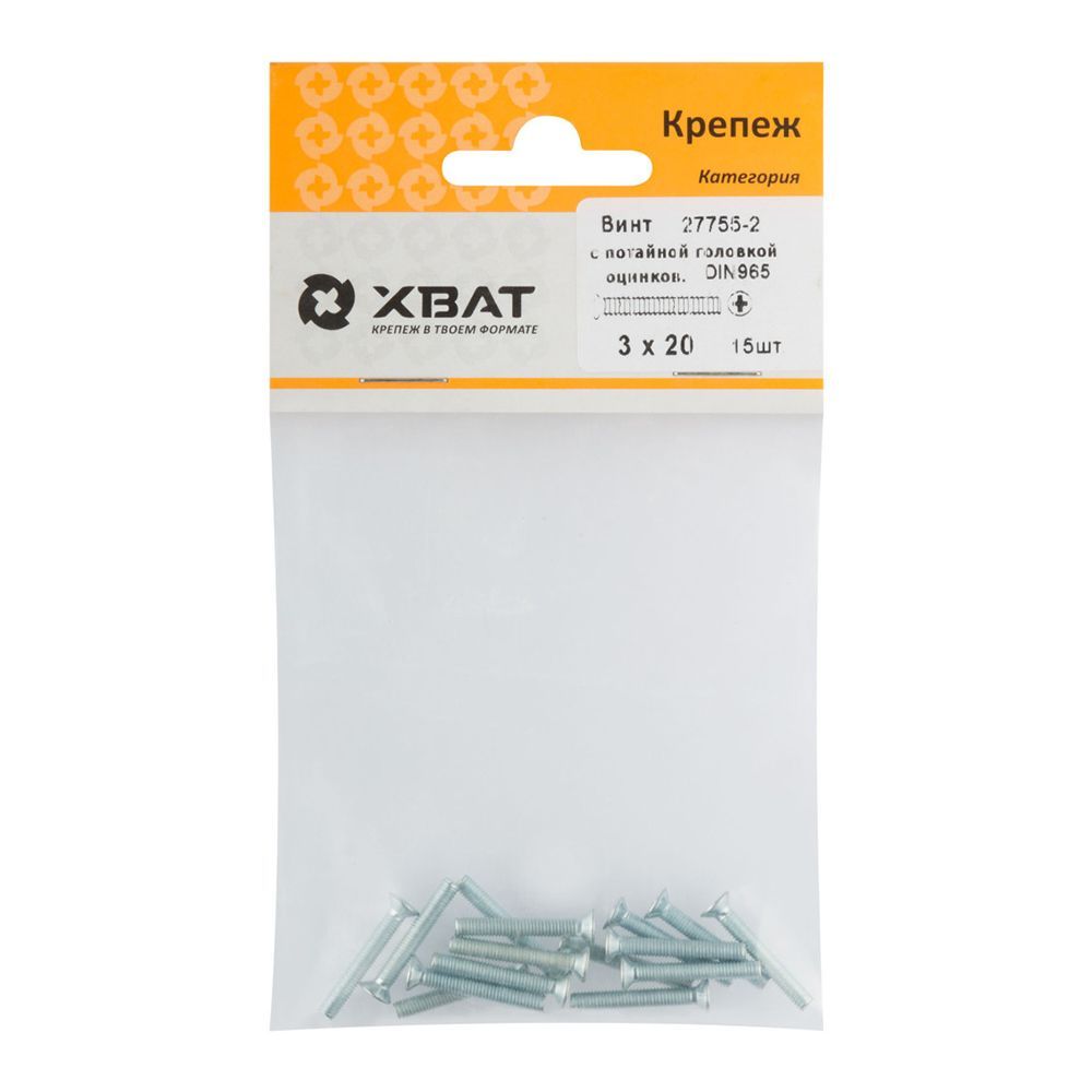 Винт с потайной головкой с полной резьбой оцинкованный DIN 965 3х20 15 шт.(фасовка)