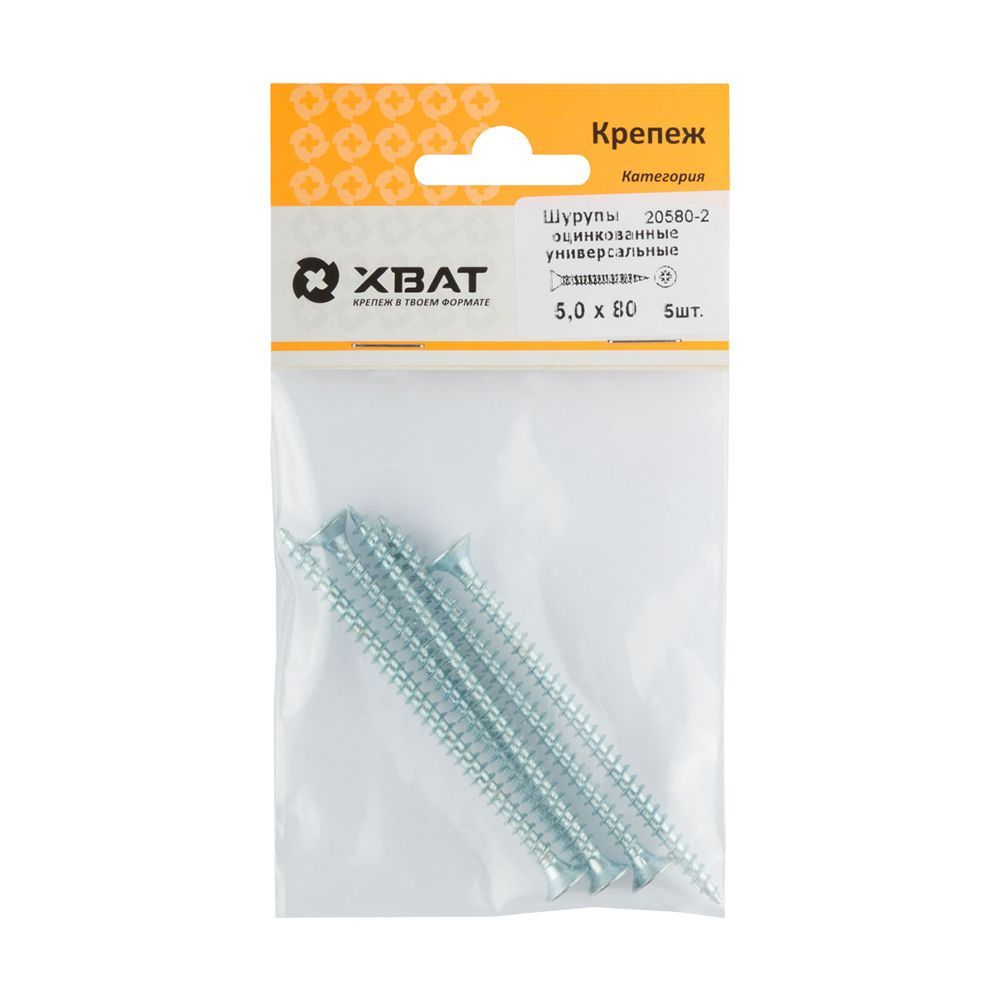 Шурупы оцинкованные, универсальные 5 х 80 ( фасовка 5 шт.)