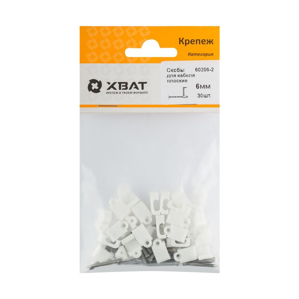 Скобы для кабеля плоские 6 мм (фасовка 30 шт.)
