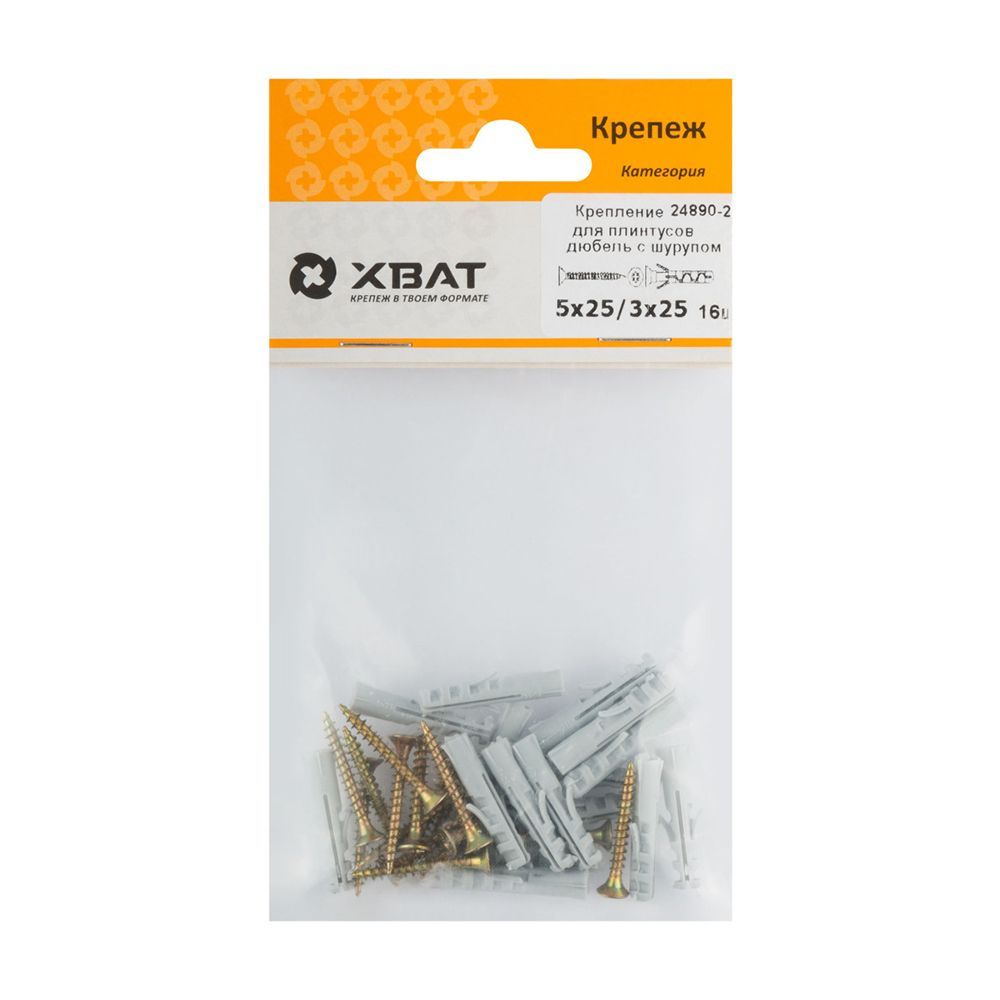 Крепление для плинтусов.Комплект: дюбель с шурупом 5х25/3х25 (фасовка 16 шт.)