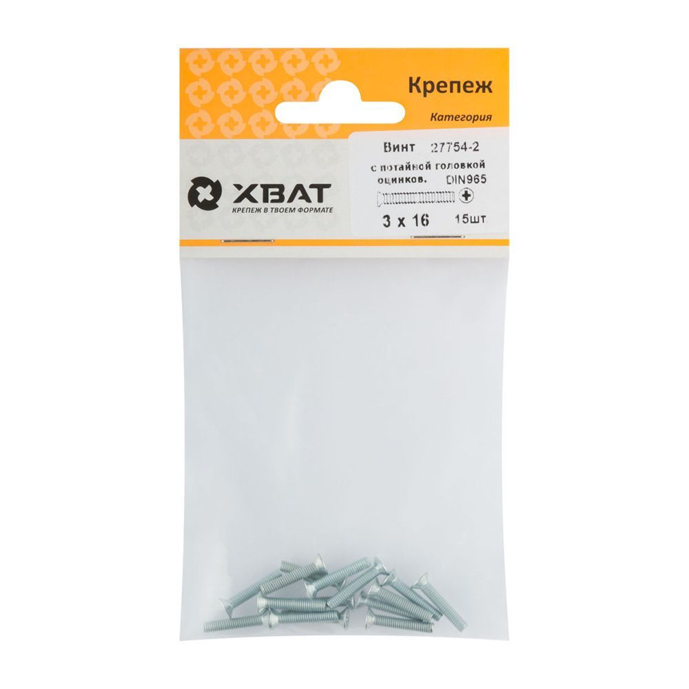 Винт с потайной головкой с полной резьбой оцинкованный DIN 965 3х16 15 шт.(фасовка)