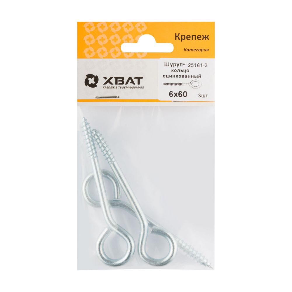 Шуруп-кольцо оцинкованный 6 х 60/65 (фасовка 3 шт)