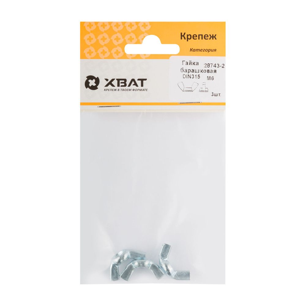 Гайка барашковая (DIN 315) М6 (фасовка 3 шт)