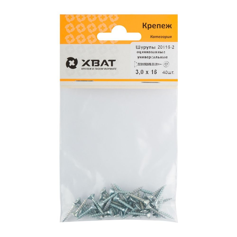 Шурупы оцинкованные, универсальные 3 х 16 (фасовка 40 шт)