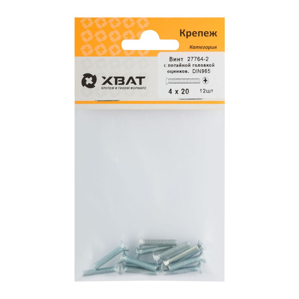 Винт с потайной головкой с полной резьбой оцинкованный DIN 965 4х20 12 шт.(фасовка)
