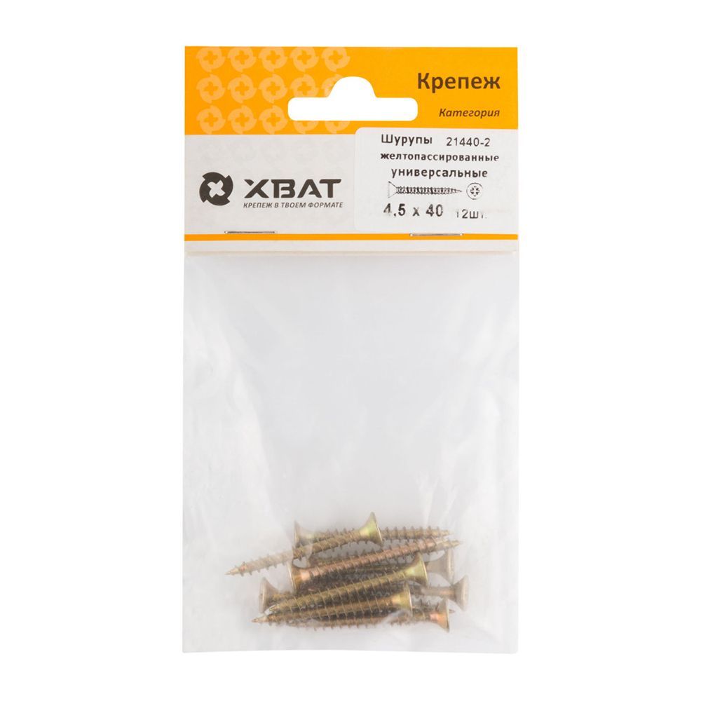 Шурупы желтопассированные, универсальные 4.5 х 40 ( фасовка 12 шт.)