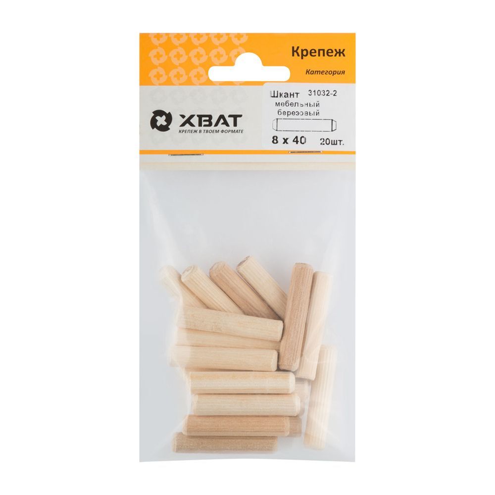 Шкант мебельный 8 х 40 березовый (фасовка 20 шт.)