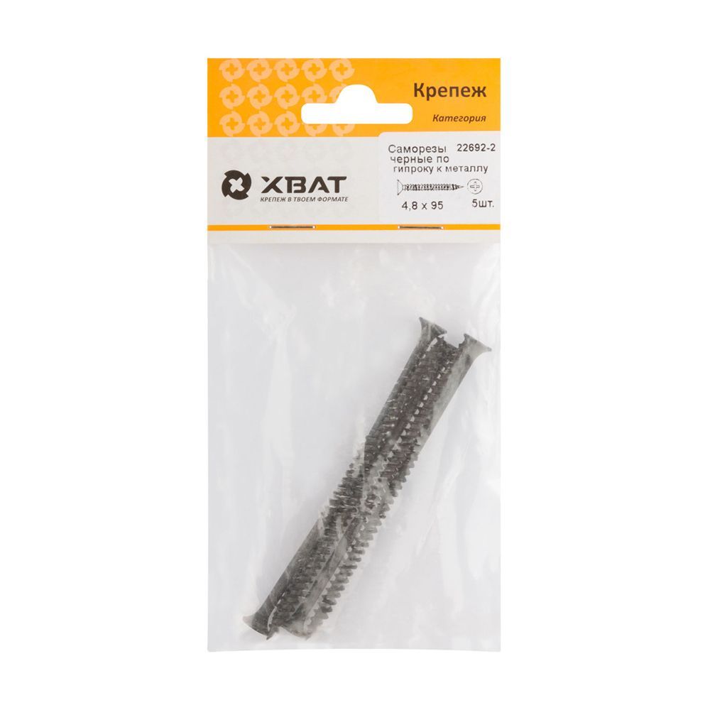 Саморезы черные по гипроку к металлу 4,8 х 95 (фасовка 5 шт)
